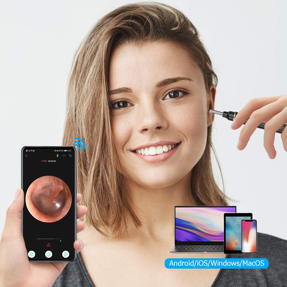 Upgraded Version Ear Otoscope: It is latest version wireless ear otoscope that can capture sharper image, reduce power dissipation and strengthen the signal. Easy Connection & Quick Operation: WiFi ear otoscope is easy to connect with Phone., Download and install the APP on your device, turn on the digital ear endscope, next launch phone WLAN and connect with device’s Wi-Fi signal, next open app and you can live streaming video on phone. Compatible with IOS, Android